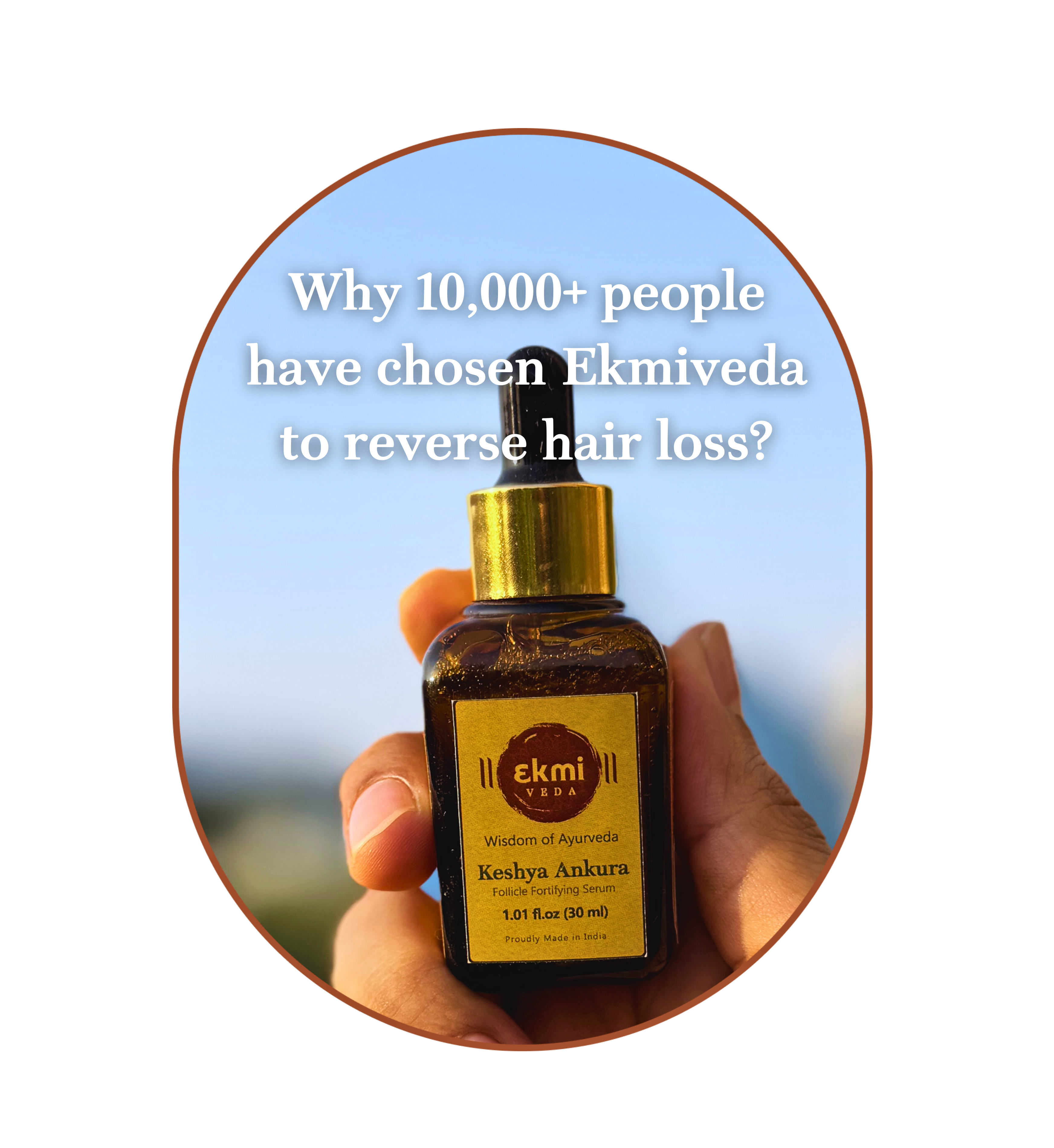 Ekmiveda's experts have over 20+ combined years of experience in reversing hair loss using Ayurveda. We follow a tested, investigative methodology of understanding your concerns, identifying root causes through Doshas, and recommending tailored treatments and customized regimes to permanently reverse hair loss.
